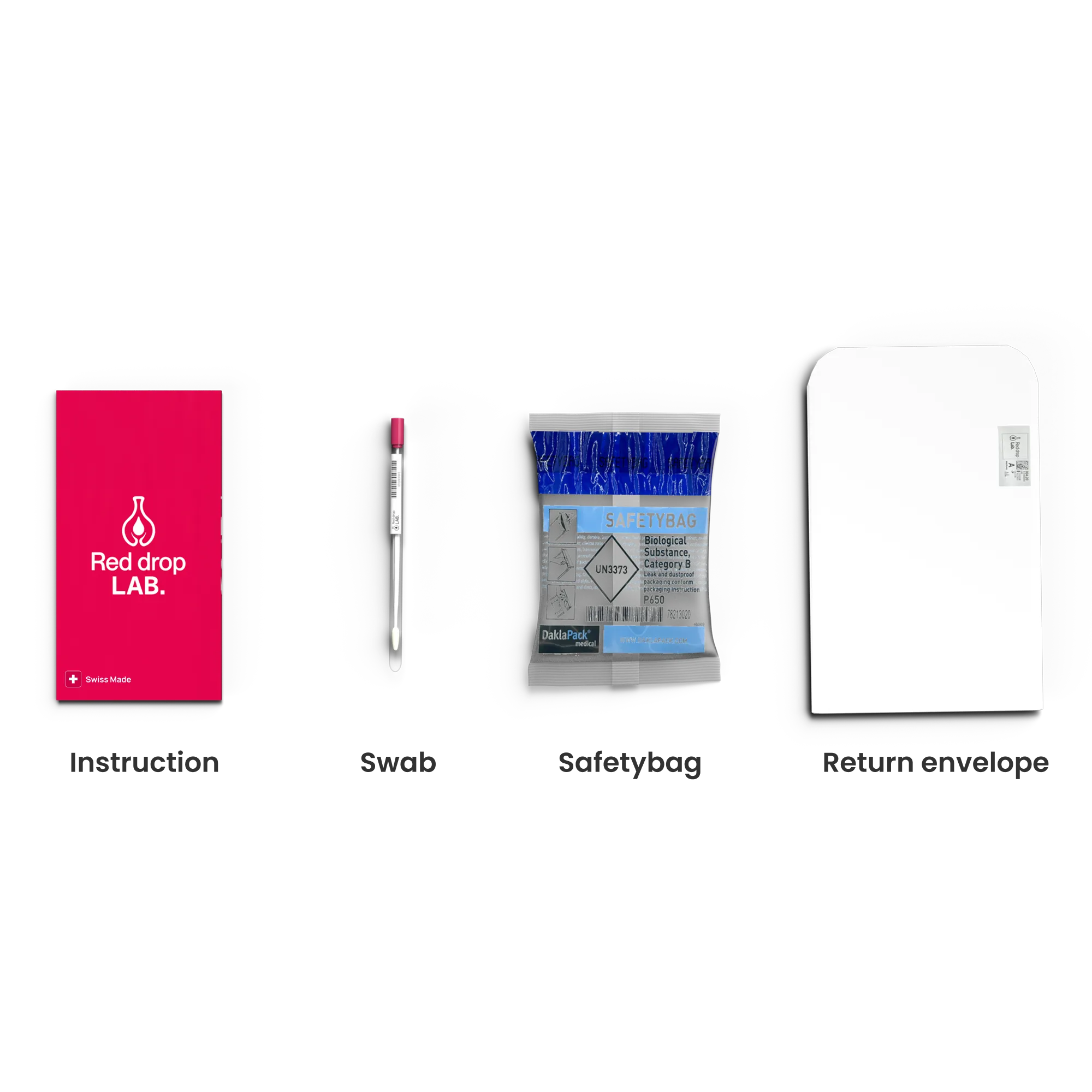 The analyses are performed in Switzerland by a certified partner laboratory under strict quality control. Every result is checked and validated by a licensed biologist before being securely presented in the Red drop LAB. application.